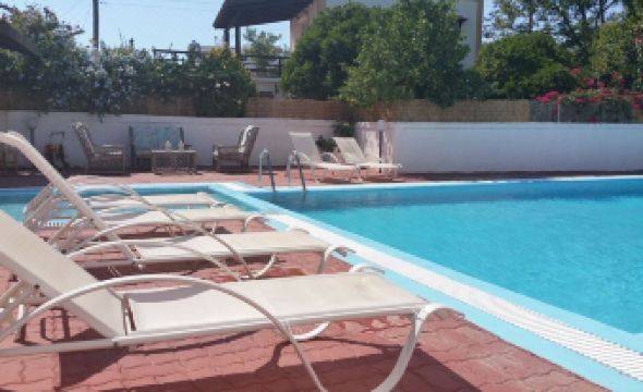 Working in hospitality we always book hotels and this was our first apartment, well it did not disappoint. We arrived to a warm welcome, the apartment was spotless and very spacious, the food was amazing, staff great and nothing was a problem. Quiet area with a 10 minutes walk to the beach however the pool is also lovely, no fighting for sunbeds or having to pay - bliss. We ate there several times enjoying their Greek specialities with complimentary dip at the start and lovey wee slice of cake at the end - lovely touch! Was great to sit with the family and hear their stories. You can see why they get so many return customers...they care about your experience and it shows! 10/10 loved it!