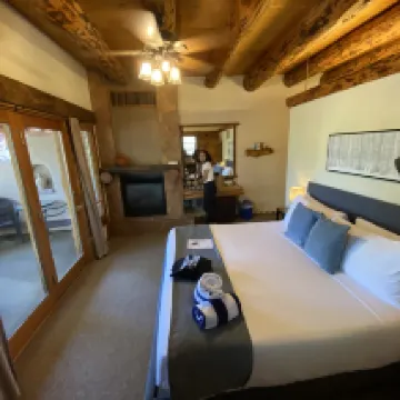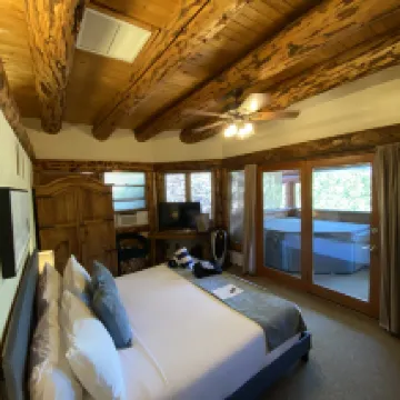 Beautiful room with a private hot tub on the balcony. We were disturbed by a construction worker banging on the outside wall at 8:00am. Otherwise it was a pleasant stay.