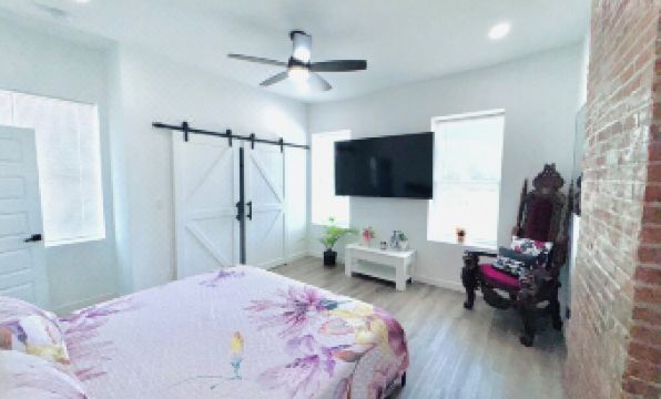 This gorgeous house features high ceilings and smart ceiling fans with light and remote control in all bedrooms, large windows with a view, bubble crystal pendant lights over the island, and our stunning complete renovated kitchen with all Stainless-Steel appliances .All bedrooms come with Large smart TV in the living room and all four bedrooms with built-in Netflix and Hulu.