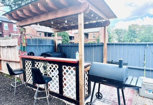 With spacious rooms and nice backyard, with the famous Ti-Ki Bar, with night lights, high quality speakers system combo set with Bluetooth/USB/FM radio/remote control/led lights with a mic. Beach seats, black bench, fire pit, sofas, and table to play your favorite family games and a new grill just for you.