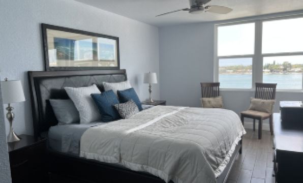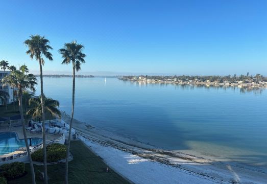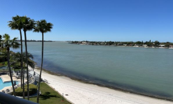 The condo is on the top floor of the building and it has water views from every window. It overlooks the Boca Ciega Bay and you can see the DonCesar Hotel tower across from the water. The Association provides 24 hour security.