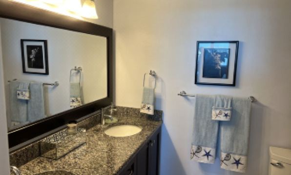 The condo has been recently completely redone and the kitchen has everything you need to cook as if you were at home. It includes a water pot faucet on the range, an Air Fryer and Keruig coffee machine. There are a full size washer and a dryer. There is a balcony overlooking the Bay with patio furniture and a high table with bar stools. The sunsets from the balcony are to die for!