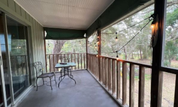 The property sits on over an acre of land, nestled among large mature Oak Trees and fruit trees. You will hear birds chirping and at times see ducks and owls.