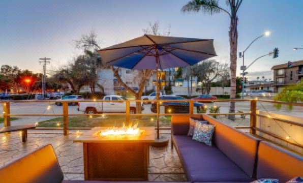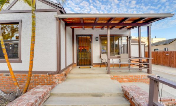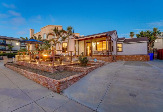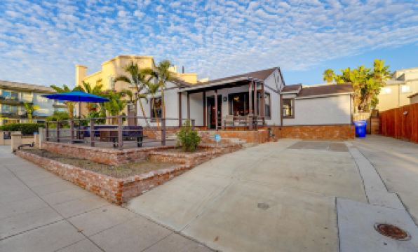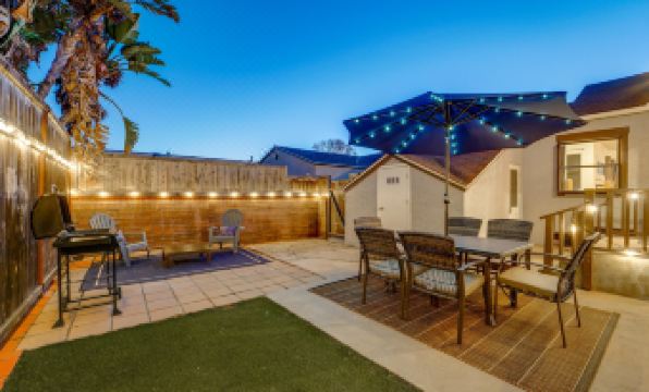 The main house features three inviting bedrooms: a king suite with ensuite bath, a second king bedroom, and a queen bedroom. A separate fourth bedroom, accessible through the backyard, provides its own queen bed and ensuite bathroom, giving added privacy for your group. Outside, you'll find a backyard retreat where you can gather around the fire pit, enjoy al fresco dining, and make the most of San Diego's year-round sunshine. With bayfront access and complimentary beach gear ready for your adventures, this home offers the ultimate coastal getaway.