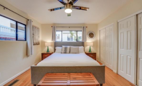 Welcome to your bayside escape, perfectly positioned along beautiful Sail Bay. This spacious 4-bedroom, 3-bathroom home offers direct bay access and is just minutes from the sandy stretches of Mission and Pacific Beach. Step inside to find a bright, open living area furnished with a plush sofa and flatscreen TV — the ideal spot for winding down after a day in the sun. The fully equipped kitchen has everything you need to whip up your favorite meals, complete with cookware, utensils, and dishware.