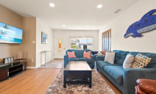 HIGHLIGHTS-Centrally Located, 10 minutes to Beaches, Bay, Downtown,Airport-AC-Amazing Backyard w/ Fruit Trees, Hammock-Patio w/ Grill and Al-Fresco Dining-Off Street Parking-Washer/Dryer-Work From Home-Luxurious Walk-In Shower-Fast WifiDESCRIPTIONConveniently located with quick access to I-5, you'll be just moments away from stunning beaches, the serene Tecolote Canyon, and the vibrant Balboa Park. And the icing on the cake? Downtown San Diego is a mere 10-minute drive away, promising endless excitement and entertainment.But let's talk about the real gem of this place—the backyard. Prepare to be dazzled by a gardener's paradise, adorned with mature fruit trees including grapes, grapefruits, tangerines and mangos, as well as the popular New Zealand fruit “feijoa”, eagerly awaiting your enjoyment. Seek solace under the expansive grapevine pergola, where you can sip a refreshing glass of your favorite beverage on a hot day. For the culinary enthusiasts, fire up the BBQ and indulge in late afternoon summer cookouts. And if you're seeking tranquility, there's nothing better than lounging in the hammock, nestled amidst the winding garden path. Soak in the serenity and observe the fluttering hummingbirds, finches, and sparrows as you unwind.As you step inside, be prepared to be enchanted by our inviting living space, meticulously designed for your comfort and relaxation. Sink into the plush sofa or snuggle up on the love seat, enveloped by an ambiance of tranquility. Get lost in the pages of a captivating book or indulge in a cozy movie night on the 50" flat-screen Roku Smart TV. And for those who need to get some work done, we've created a convenient desk and office chair, positioned next to a window to invite in refreshing natural light. Whether you need to check emails or curate the perfect itinerary, this cozy spot caters to all your needs.Calling all culinary enthusiasts! Our fully equipped kitchen is a haven for unleashing your inner chef. Discover ample counter space and high-end appliances, including an electric convection oven range, providing you with all the tools necessary to create mouthwatering dishes. Savor your morning coffee at the charming breakfast nook for two, overlooking the picturesque garden, or perch at the kitchen bar with seating for three.When it's time to gather and share a meal, the dining area welcomes you with abundant natural light streaming through the adjacent French glass doors. With room for up to six guests, this sunny spot sets the stage for unforgettable home-cooked feasts.As the day winds down, retire to our comfortable bedrooms, where blissful slumber awaits. The master bedroom boasts a luxurious king-size bed, ensuring you wake up refreshed and rejuvenated. The adjacent bathroom features a lavish walk-in shower, adding a touch of indulgence to your stay. The guest bedroom offers a cozy queen-size bed and an en-suite bathroom complete with a luxurious jetted tub/shower combination, allowing you to unwind in style.Embrace the magic of our enchanting Bay Park home and experience a garden paradise like no other. Book your stay today and embark on an unforgettable journey of relaxation, beauty, and serenity.SUITABILITY-25+ age limit or family groups-Exterior security camera and decibel meters-ID and credit card verification required-No pets due to homeowner allergies-No smoking anywhere on property, including exterior areas-No parties or over occupancy at any point during stay without Coast consentSLEEPING ACCOMMODATIONS (sleeps 4)-1 King (sleeps 2)-1 Queen (sleeps 2)THINGS TO KNOW-Guests must sign a separate e-sign agreement with important terms and conditions and ID and credit card verification is required to complete the booking process.-Home is available for 10 day stays or more -Gardener visits the home every Thursday -In accordance with the local Short Term Rental Ordinance, this home is equipped with a device that monitors noise levels (but does not record sound). It is located in the main living area-There are 2 active camera systems. One in the backyard and one in the front yardATTENTIONThis home is located in a high-density neighborhood and is only suitable for quieter groups..