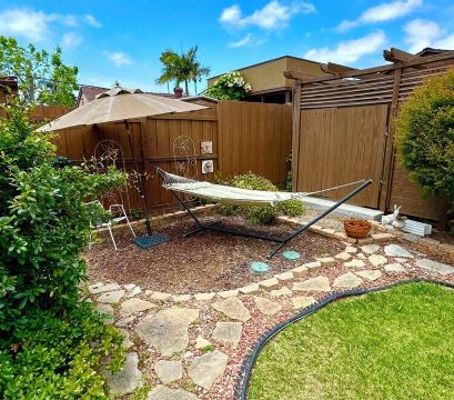 Please make yourself at home in the backyard. A section of the yard behind the unit has a table, chairs, and a gas grill for your use. You may use the hammock and any of the lounge chairs on the brick patio. A hose is nearby for washing off sandy feet and a place to hang damp swimsuits and beach towels.