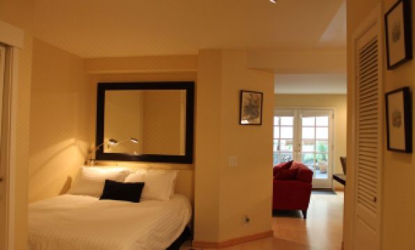 French doors open out to a private garden patio with soothing fountain. Spacious living area, new remodeled kitchen with breakfast bar and all new stainless steel appliances. All new furniture and 46' HD TV w/HD cable. Queen bed with quality linens. Bathroom has huge shower (great water pressure). High speed wireless internet provided. Free Washer/Dryer on site.