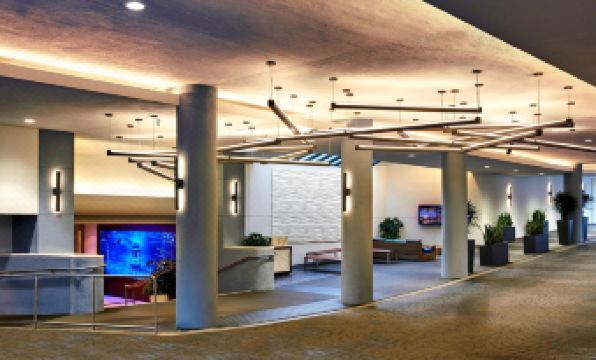 Discover the Bay Area while staying at San Francisco Marriott Fisherman's Wharf. Our hotel is located near world-famous attractions like the Golden Gate Bridge, Oracle Park, and Pier 39. Spend an afternoon tasting the foods of Fisherman's Wharf or explore the mysteries of Alcatraz Island. The aesthetic atmosphere of the city continues through our hotel rooms and suites, complete with stylish décor. As you lay on the pillowtop beds, you can stream your favorite shows on our Smart TVs, or get to work with high-speed Wi-Fi and large workstations. Start your day on a high note at our on-site eatery, Red Fin Restaurant, or enjoy craft cocktails at Red Fin Lounge. Venture out to Chinatown for a cultural experience or elevate your San Francisco adventure with a ride in the cable cars. Feel the burn in our fitness center with cardio equipment and free weights. Whether in town to see the sights or to meet with clients, our North Beach San Francisco hotels deals and offers ensure your stay is unmatched and memorable.