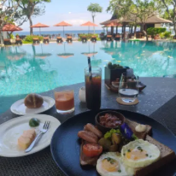 Breakfast facing the pool was very peaceful, and the greenery was well-maintained. The food quality was good, and the room was lovely. I had a very comfortable stay.