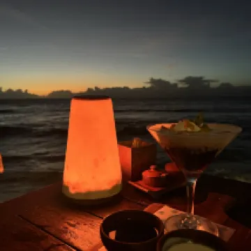Unfortunately, I missed the sunset due to a flight delay, but having dinner right on the beach at night was also fantastic.