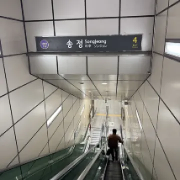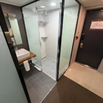 The room was spacious, though the bed was a bit on the small side. The hot water and air conditioning worked perfectly. The location is excellent; it's just a 50-meter walk from Exit 4 of Songjeong Station on Metro Line 5. It was super convenient for catching an early 6:15 AM flight from Gimpo Airport the next day, as it's only one stop away.