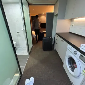 First time traveling to the area for business, and they provided a washer-dryer combo, which exceeded my expectations – definitely a big plus! The transportation nearby is convenient, and both shopping and dining options are easily accessible. Very impressive!