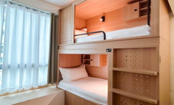The hotel is newly opened and currently in a soft-opening phase. Wi-Fi is only available in the lobby on the first floor, not in the rooms. The rooms have bunk beds and plenty of storage space, plus they have proper windows, which is a great design – we could open them for ventilation when we went out. There was no formaldehyde smell in the room either. Currently, toiletries are self-service, but this might change once they officially open. If you arrive early or need to store your luggage on your last day, you can do so in the lobby.