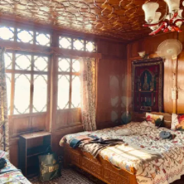 So glad we began our trip to Kashmir here. The boat is beautiful and peaceful with a glorious outlook over the lake. Sunrise and sunsets were knockout and the rooms are spacious with en suite shower rooms. Breakfast was included and different every day, We met Ajaz at Srinagar airport and knew immediately we had made a good choice. He was helpful and knowledgeable, with lots of great local stories which gave the whole experience an extra dimension. The boat itself is beautiful and so spacious; it's a wonderful place to birdwatch and we spent hours looking at egrets, kingfishers and herons as they came so close to where we were sitting. Sounds like a cliché but it really did feel like a home from home. Wonderful.