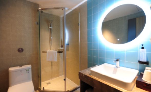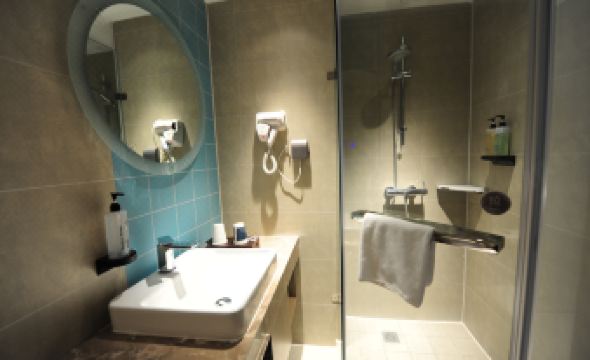 房間設施齊全,衞生好,前台還免費升級了房型,出門就是泰安銀座和大商超,方便吃飯和購物。