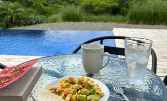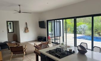 Wake up to mountain views and the sounds of howler monkeys. Our airy living space features floor-to-ceiling windows, a fully equipped kitchen, and an open-concept layout designed for light, breeze, and indoor-outdoor living.