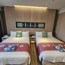 Stayed in a snoopy-themed room for 4 people. The room was clean and full of snoopy elements. Breakfast was buffet style and the food was diverse. The hotel is located in a remote location, so please pay attention to transportation arrangements. Although the hotel arranges buses to and from Taoyuan Station, the buses are rarely full.