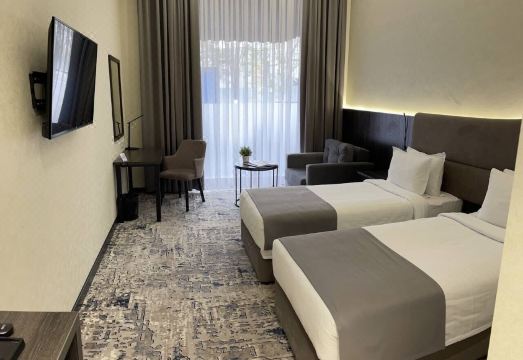 The hotel is not bad, we stayed in rooms on the 1st, 4th, and 5th floors, the 5th floor was the most comfortable. It is clean, there are robes and bathroom amenities, including dental kits. The staff is polite and helpful. By the way, this hotel has its own currency exchange service, which was very convenient. The exchange rate is tolerable. What was disappointing was the breakfast: there is only one coffee machine, and there is not always a line near it (( Porridge with water (why???) and in general it is somehow poor... Although the girls in the kitchen are very helpful and smiling)) Basically, they need to sort out the breakfast - and everything will be fine! By the way, across the street there is a family restaurant Darya (I think I wrote it correctly), they have very tasty food and reasonable prices! But no alcohol (but we brought our own mineral water bottles and drank from their glasses, and no one complained because we did not make a scene). There is a metro station nearby, one (I think) stop to Chorsu Market, and about three to Tashkent City Mall.