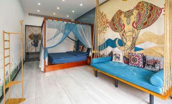 9 bedrooms: 3 futon beds 1 single bed 8 queen beds and 2 round beds | 1 living room