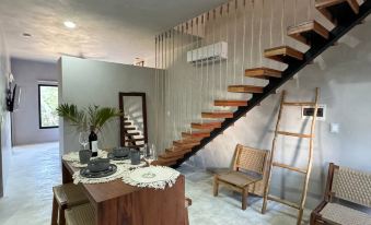 Escape to a tranquil haven in the heart of the Tulum jungle, where lush greenery meets luxurious comfort. This stylish one-bedroom, one-bathroom penthouse apartment is the perfect retreat for couples, solo travelers, or honeymooners seeking a relaxing escape from the world. With its private rooftop entrance, you'll feel like you're on top of the world, taking in breathtaking views of the surrounding jungle.