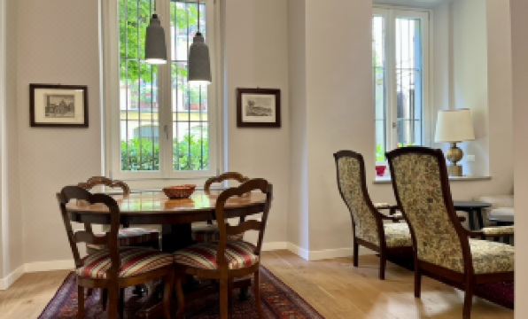 Welcome to this beautiful Turin apartment, perfectly located in the heart of the city. Recently renovated, the space offers a warm and inviting atmosphere, perfect for families, groups of friends, or two couples seeking comfort and charm. The apartment features a fully equipped kitchen, a spacious and cozy living room, and free Wi-Fi to keep you connected. Enjoy the stunning views of the garden from the comfort of your own home. The apartment is ideal for those who want to explore Turin's main attractions on foot, including the Mole Antonelliana, just a short turn away. Relax in the evenings with a family movie night in the TV room or enjoy a quiet evening in the library. The apartment is great for children and pets are also welcome. With central heating and a range of kitchen facilities, including a gas stove, oven, and microwave, you'll feel right at home. The apartment is fully wheelchair accessible and has a professional cleaning service to ensure your stay is comfortable and stress-free.