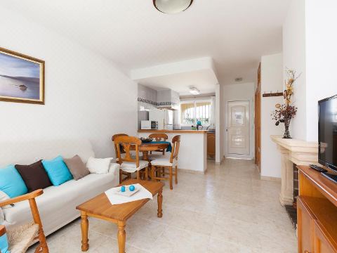 Terraced house "Urb La Esmeralda". In the district of Nova Dénia, Las Marinas, 5 km from the centre of Dénia, 500 m from the sea. For shared use: garden with lawn, swimming pool (01.01.-31.12.). Supermarket 500 m, restaurant 300 m, bus stop 250 m, sandy beach 500 m. 3-room terraced house 50 m2 on 2 levels. Practical furnishings: living/dining room with open-hearth fireplace, TV, air conditioning and forced-air heating. Exit to the garden, to the terrace, to the swimming pool. Open kitchen (oven, microwave, freezer). Shower/WC. Upper floor: 1 room with 1 french bed, air conditioning and forced-air heating. Exit to the terrace. 1 room with 2 beds. Bath/bidet/WC. Terrace 8 m2, roofed. Terrace furniture, barbecue (portable). View of the swimming pool and the garden. Facilities: washing machine. Internet (WiFi, free). Reserved parking. AT-431572-A Mandatory Fees paid on arrival: Breakage deposit by credit card Visa / Mastercard - 200.00 EUR fixed price Final cleaning - 24.00 EUR per person Laundry (initial supply of bed linen and towels) - 13.00 EUR per person