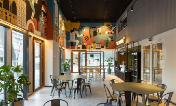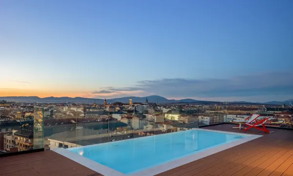 Apartment style hotel. Good sized, comfortable rooms. We did not cook but the unit had a cook top and seemed to have all the cooking supplies you'd need. If you are facing the main street it can be a bit noisy due to the traffic and nearby cafes but it's only an issue if the windows are open. There's a laundry facility that you pay via and app that was much appreciated and the machines worked well. The hotel has onsite parking with a typically tight Spanish parking garage. There is a public lot literally next door so I would compare prices before deciding where to go. There are quite a few cafe, restaurants, and some takeaways nearby but it's a pleasant 10-15 minute walk to the heart of the old city, which is very nice and has all kinds of dining options. The tram also runs with a few blocks of the hotel if you need to go farther afield. We would stay here again.
