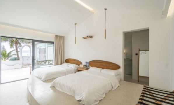 民宿位置有些房型位置好,有些不好,比如我住的這個房型位置就比較靠後(兩室兩床的房型)雖然是小院型,但是走到前台就有點距離,加上在沙灘上走,就出奇的累人😥。然後就是衞生間問題,真的好雞肋😬,那個馬桶坐下去頭就直接撞牆,我不知道設計這個的時候怎麼想的,那個距離就非要留那麼窄嗎?然後就是那個智能馬桶,更好笑,坐上去之後它隔一段時間就自動落蓋,關鍵我人還坐上面的,它感應不到有人嗎?然後就直接落在背上,然後用手去把它弄上去,我真的是服了,還不如用正常的馬桶,裝什麼*用智能的,還不智能。最後就是衞生間沒有掛鈎的問題,你要洗澡,換下來的衣服就衹能直接甩在隔板上,或者你在房間脱完衣服再進去,連浴巾都不要帶進去那種。説完不好的地方,再説説好的,小院很有調調,房間簡潔舒適,離海灘很近,適合年輕人度假。。