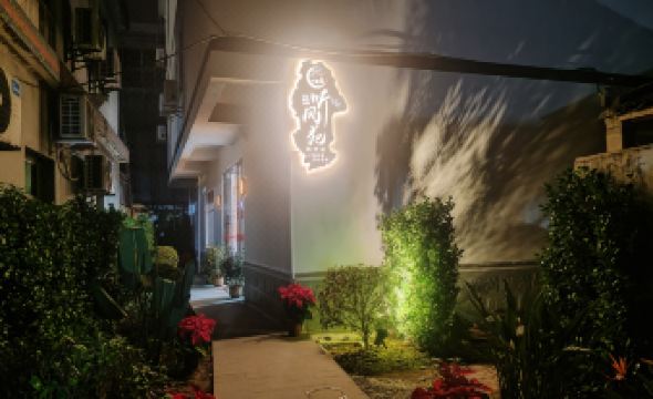 民宿的建築與周圍的環境完美融合。白色的外牆簡潔大方,滿園的植物增添了一抹生機。牆上掛着的招牌帶有傳統的風格,透露出濃郁的文化氛圍。建築物旁邊擺放着一些盆栽植物和裝飾性的石頭,每一個細節都體現了民宿主人的用心。在這裏,你可以住進舒適的客房,享受温馨的服務,彷彿回到了自己温暖的家。