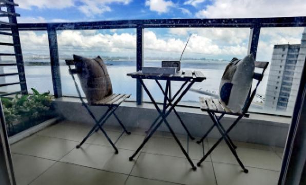 💡[民宿給我的小驚喜] 那個陽台很大,37樓望着一片大海,那種感覺,簡直不要太爽了。
