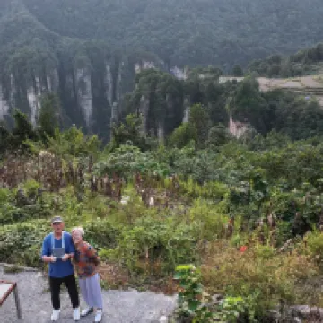The hotel's location is great, less than a 10-minute walk to the East Gate (the main entrance). The owner was very kind and answered all our questions, even giving us detailed explanations of the pros and cons of various tour routes. As an 80-year-old couple traveling independently, we chose Route B. On the first day, we took the eco-car from the East Gate at 8:00 AM directly to the Bailong Elevator, rode it to the upper station, and toured the main attractions of Yuanjiajie. For lunch, we stayed overnight at a guesthouse on the cliffside. On the second day, after visiting the main attractions of Tianzi Mountain, we took the cable car down the mountain, then toured the Ten-Mile Gallery and a short section of the Golden Whip Stream before returning to the guesthouse at 3 PM.