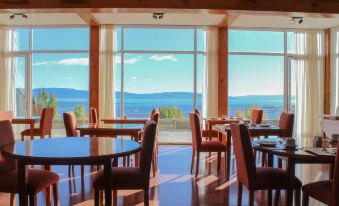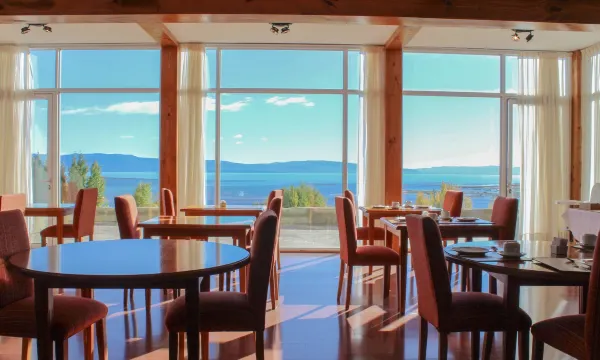 É extremamente importante que as fotos ou a descrição do hotel deixem claro que o hotel não possui elevador e que a conexão da parte superior , onde existem quartos , com parte inferior, onde está o restaurante, é feita por escadas. Isto traz dificuldade enorme as pessoas que tenham dificuldade de mobilidade , quer seja por idade ou por deficiência. Fiquei na parte inferior e tive que descer escadas com malas. Se ficasse na parte superior teria que acessar o restaurante por escadas. Outras coisas poderiam ser melhoradas também. O acesso por carro até a recepção é feio , sem asfalto. Não há alguém para te recepcionar e ajudar com as malas. Os funcionários em geral parecem fazer o básico e não estão muito preocupados em agradar os hóspedes. Falta treinamento. Mais profissionalização. O hotel só disponibiliza Room Service após as 19 hs e assim mesmo não ficamos sabendo o que ofereciam. Tivemos que solicitar delivery pois fazia frio para ir a cidade. O ponto alto é a vista para o lago Argentino.