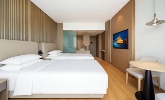 Located in the heart of the city, under the city wall, a two-minute walk takes you to the ancient city wall, close to the moat, with bars and teahouses lining up, making it the top choice for leisure and sightseeing at night. It takes only 10 minutes to reach Xiaojinqiao Hui Min Street for authentic local cuisine, and two subway stops to get to Zhongguelou and Yongning Gate SKP shopping district. The rooftop viewing terrace offers a breathtaking view of the 600-year-old Ming city wall, with an exclusive visual feast during the nightly light show. Intelligent guest rooms, cultural experiences, and superior location combine to create a poetic dwelling for business travelers and culture seekers beneath the ancient city wall.
