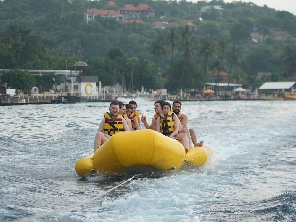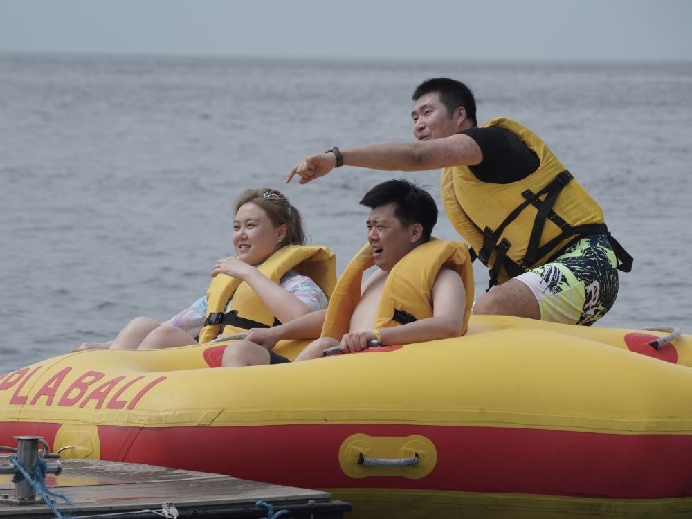 ▲ Enjoy an exciting banana boat ride at Caspla Bali, racing over the waves with friends and family for pure fun and laughter.