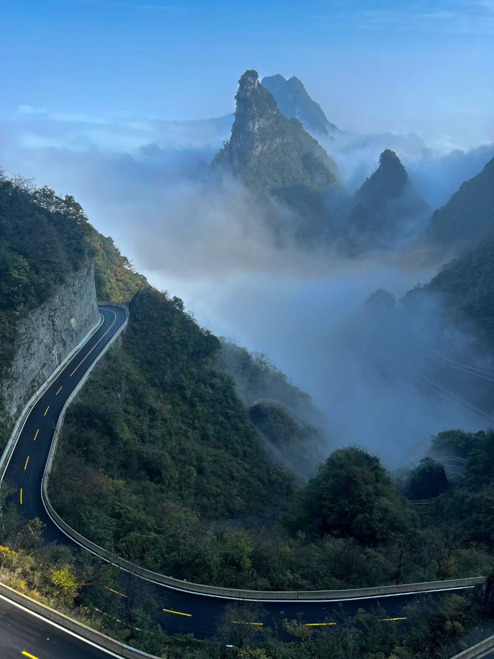 in the morning, the guide and driver will meet you at hotel lobby, then ahead to Tianmen Mountain, known as the “First Sacred Mountain in Western Hunan”. you will take the longest passenger cable car in the world from the city to the mountain top. It takes about 30 minutes, and you can enjoy amazing scenery all the way. On the top, you will walk along the cliffside paths and the famous glass skywalk. It's thrilling but very safe. you will also visit Tianmen Temple and climb to the Yunmeng Fairy Summit for a panoramic view. Then you will take the long escalators down to Tianmen Cave, the natural mountain arch that looks like a gate to heaven. Finally, we go down the 999 steps or take the escalator, then take the shuttle bus back.