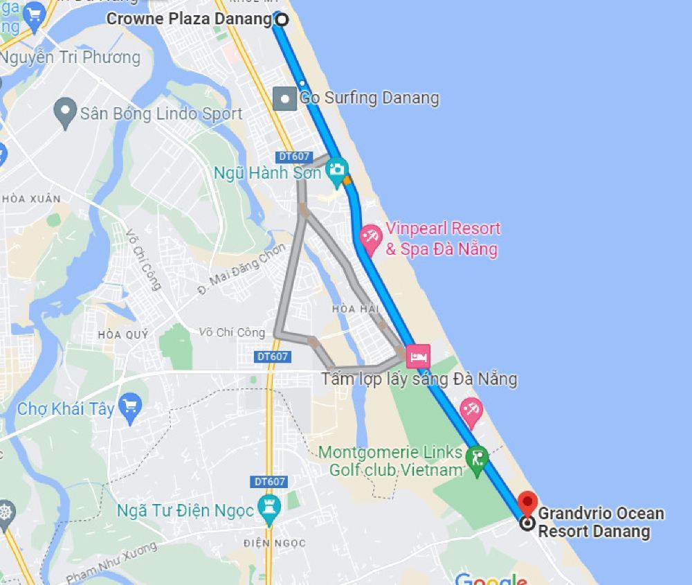 ▲ Hotels/resorts located in Ngu Hanh Son District and Hoa Hai Ward (as shown in the picture above) are subject to a remote transfer surcharge (200,000 VND/group/round trip).