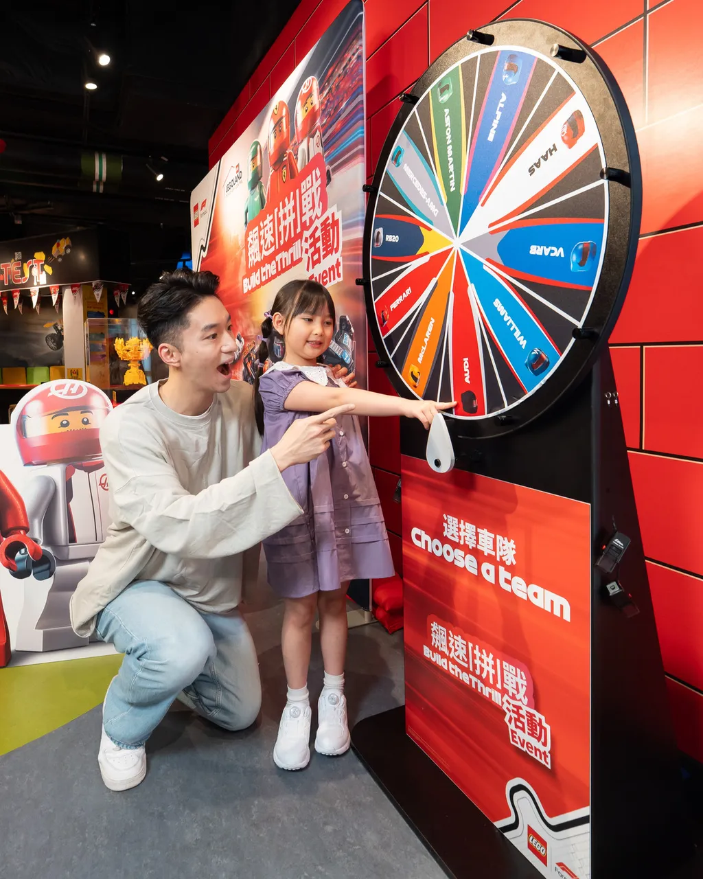 Before heading into the race arena, all aspiring LEGO® racers, please spin the wheel to decide which renowned team you will join – you might just be selected for your dream F1® team!