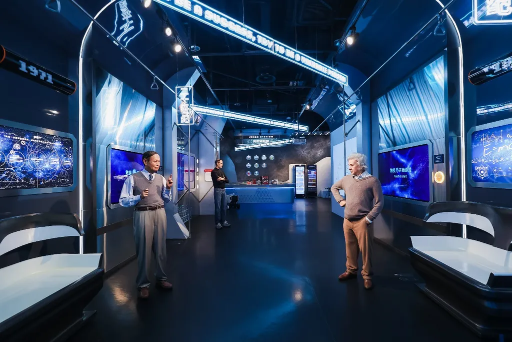 In this time-traveling train carriage, you can explore the photoelectric effect and parity violation—groundbreaking discoveries that earned Einstein and Yang Zhenning their Nobel Prizes—through interactive science games and experiments. Listen to an AI-generated Steve Jobs deliver his iconic Stanford commencement speech, then touch interactive projections to relive pivotal moments from his extraordinary life. Immerse yourself in a simulated spacecraft cabin with Yang Liwei, experiencing a rocket launch and the wonders of space travel. Take a break at the "Lunar Fuel Station" to enjoy moon-themed snacks, craft your own interstellar wax hand souvenir, browse space-themed merchandise, and marvel at the breathtaking lunar landscape.