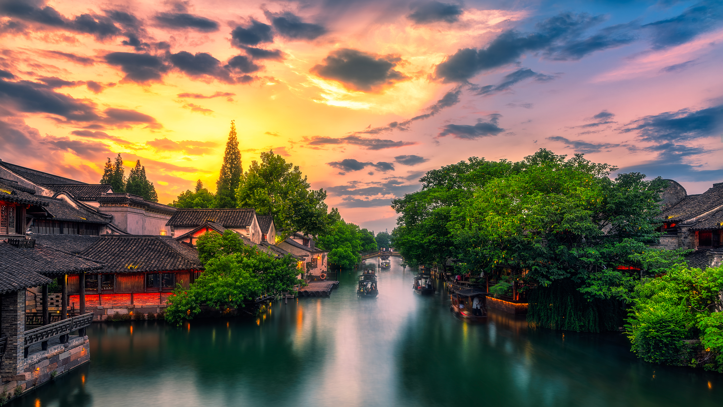 In the evening, head to Xizha in Wuzhen to capture the beautiful dusk scenery and nighttime lights, preserving the romantic and serene atmosphere of this water town.