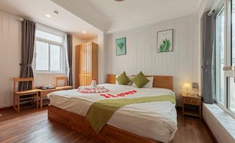 Room is really huge and the queen bed can fit 3 person. Family room’s located on the very top floor, so from the 5th floor you have to take stairs to one more floor. The only downside from this room is the floor’s very dusty. Even after asking for clean up it’s still really dusty so you have to wear sandals inside. Location’s is in tourist area so you can get any foods, stuffs from really nearby.